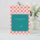 Monogram Coral Pink Quatrefoil Pattern with Teal RSVP Card