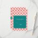 Monogrammed coral pink quatrefoil pattern with teal. Pink quatrefoil patern on white. Wedding RSVP cards.