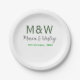 Monogram couple grey green modern romantic date si paper plate