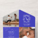Monogram Crest 3 Photo QR Code Royal Blue Wedding All In One Invitation