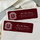 These elegant formal dark burgundy wedding return address labels feature an ornate vintage style monogram crest with fancy script calligraphy for the initials of the bride and groom. Find matching products in the collection, or message me through Zazzle Chat for more products and design tweaks.