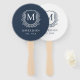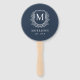 Monogram Crest Navy Blue Botanical Wedding Hand Fan