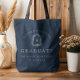 Monogram Crest Navy Blue White Graduation Tote Bag