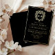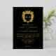 Monogram Crest Formal Script Typography Black Foil Invitation.