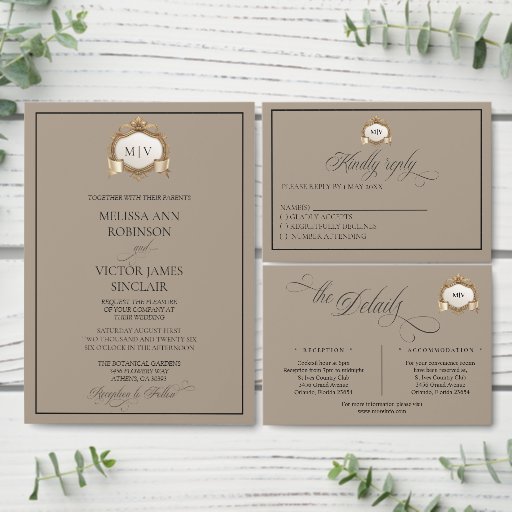 Monogram Crest Wedding Invitation, Please contact the designer for questions on this design or more options.