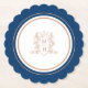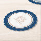 Monogram crown crest rose gold dark blue wedding paper coaster