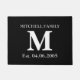 Custom add your own monogram, initial, family name and wedding or anniversary date modern black and white chic doormat.