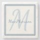 This design is inspired by the colours of the sea, and it can be personalised with your monogram and name. The typography is set in a popular hand written script font in blue and blue-grey, and the text is surrounded by two blue borders. All of the colours and text sizes can be changed in the Edit Menu.