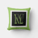 This custom pillow is ready to personalise with your own monogram in a bold black and green design for unique decor.