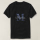 Monogrammed custom baby name baby boy tee to customise. Hand sketched initial and script name in dark blue and burgundy lettering on a blue tee. Add your baby's name and initial. Works for a girl too!