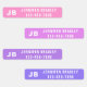 This custom design features your monogram on the left with a personalised name and text to the right. There are four variants in pink and purple with white text. Personalised by editing the text in the text boxes. Perfect for school, work, home or sports.