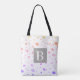 Create a monogram custom personalised polka dot art tote bag with an original design in pastel colours. Art copyright Ann Powell all rights reserved.