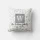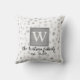 monogram custom pillow grey and white polka dot pattern with text to personalise for unique home decor.