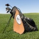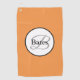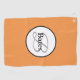 The monogram customised golf towel has an orange background with a large white circle design outlined in black. The last name monogram grey letter is centred in circle along with the full last name in black. This golf towel is great gift for all golf players on Birthdays, Father's Day and more.