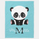 Monogram Cute Panda Personalised Bubble Gum Blue Fleece Blanket