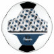 Add your monogram initials and name to this eye-catching and stylish football soccer ball design featuring a pattern of black and white and dark blue and white soccer balls with accents in coordinating dark blue, black and white. Ideal for any soccer player, football coach or soccer fan whose team colours are blue and white.