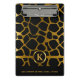Monogram Dark Gold & Black Giraffe Pattern Mini Clipboard