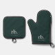 Monogram Dark Green Stylish Modern Minimalist Oven Mitt & Pot Holder Set