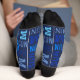 Personalised by you, these novelty Sunday Day Of The Week socks in dark navy blue with a custom monogram initial are the ultimate fun gift. These one of a kind monogram socks feature your choice of monogram letters in a bold font scattered among a collage pattern of SUN (short for for SUNDAY) in a mix of cute thin handwritten and fun silly fonts in lighter shades of sky blue, azure and sapphire on a navy blue background. Personalised Sunday novelty socks in navy blue with a monogram of your choice makes a cute gift for almost any occasion. Check out my other available days for a personalised set of Days Of The Week socks for adults so you can create a full set in deep navy blue or mix and match colour choices. Fun for men and women, custom monogram Sunday socks in dark navy blue are a cute choice for Father's Day, Mother's Day, Birthdays, Holidays or as a gag gift.