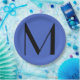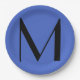 Monogram Deep Royal Black Modern Add Name Initial Paper Plate