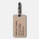 Luggage tag with a beige, tan, brown, and light green desert camo camouflage pattern and monogram initial(s) or name on a black circle monogram frame. Personalise with your monogram initial(s) or name, name, and address information using the easy templates. Font colour, font style, and font size are customisable.