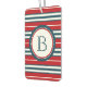 Nautical themed design with monogram decoration in round shape with rope illustration on blue, red and white striped background