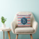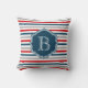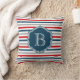 Nautical themed design with monogram decoration on blue, white, red and grey striped background