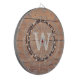 Monogram design for Christmas with wreath and snow decoration on rustic wooden background