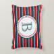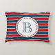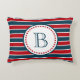 Nautical themed design with monogram decoration in round shape with stars on blue, red and white striped background