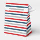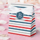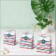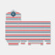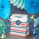 Nautical themed design with monogram decoration on blue, white, red and grey striped background