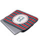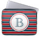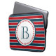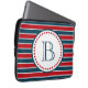 Nautical themed design with monogram decoration in round shape with stars on blue, red and white striped background