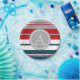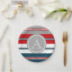 Nautical themed design with monogram decoration in round shape on blue, white, red and grey striped background