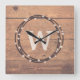 Monogram design for Christmas with wreath and snow decoration on rustic wooden background