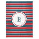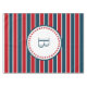 Nautical themed design with monogram decoration in round shape with stars on blue, red and white striped background