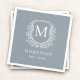 Monogram Dusty Blue Crest Botanical Wedding Napkin