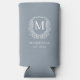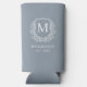 Monogram Dusty Blue Crest Botanical Wedding Seltzer Can Cooler
