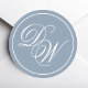 Monogram Dusty Blue Elegant White Script Initials Classic Round Sticker