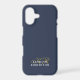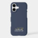 Elegant neutral stylish premium look iPhone case, customizable personalizable with monogram, initial letters and name, appropriate for a gentleman. Refined monochrome classy manly dusty navy blue background, elegant gold calligraphy script handwritten initial letters, and white serif typography for the name. Beautiful and timeless, for you or as a thoughtful custom useful tech electronic accessory gift for him. A best friend, a coworker, a boss, or someone from the family, a dad, a brother, even a grandfather will be very happy to receive this cellphone protection case. For personal or professional business use. Very affordable, a custom gift under 30 dollars for him, suitable for many occasions and celebrations, like birthday, Father’s Day Christmas, graduation, retirement, anniversaries or just to make him a little surprise, without any special occasion.