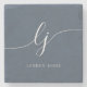 Monogram Dusty Navy Blue White Simple Elegant Feminine Stone Coaster