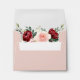Designed to coordinate with our Romantic Blooms wedding collection, this customisable matching RSVP envelope features a coloured dusty rose envelope with black text & monogram with a watercolor burgundy and blush floral arrangement on the inside.