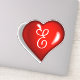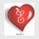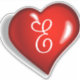 Monogram E, white script on ruby red heart