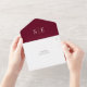 This chic minimalist all-in-one wedding invitation can be personalised with your monogram initials and wedding day information on a burgundy background. The invitation includes a perforated RSVP card that can be individually addressed or left blank for you to handwrite your guest's address details. Designed by Thisisnotme©