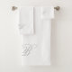 Monogram Elegant Gray Initials White Bath Towel Set. Design by Simon & Grace. Customizable scripty gray text on ivory white. Personalize with your Initials. We invite you to visit our Zazzle store, Simon & Grace, to view matching products and more. Please contact us if you require any assistance.