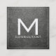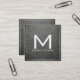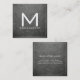Monogram Elegant Modern Battleship Grey Leather Square Business Card