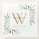 Elegant watercolor greenery leaves monogram name glass coaster featuring a gold monogram initial. Designed by Thisisnotme©