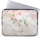 Monogram Elegant Pink Rose and Peony Floral Laptop Sleeve