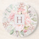 Monogram Elegant Pink Rose Peony Floral Marble Coaster