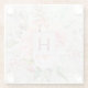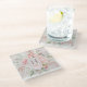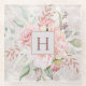 Monogram Elegant Pink Rose Peony Floral Marble Glass Coaster