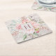 Monogram Elegant Pink Rose Peony Floral Marble Square Paper Coaster
