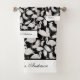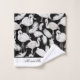 Monogram this black and white bath towel set with your names, initials or any text. A pattern of white swans with feathers on black. Very stylish and chic.  See our matching bedroom/bathroom products in our store.